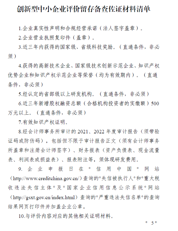 1.创新型中小企业评价留存备查佐证材料清 单