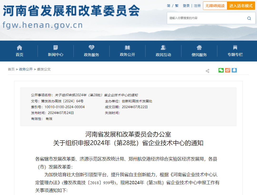 ➤河南省2024年(第28批)省企业技术中心申报工作